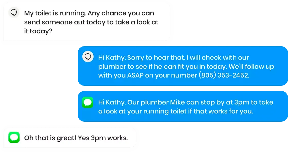 O Webchat permite que você envie mensagens de texto para seus leads mesmo quando eles saem do seu site. Usando mensagens de texto empresariais, direcionamos as mensagens para o celular deles para que você não os perca.