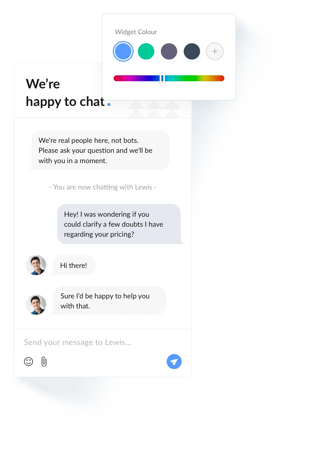 Informe aos visitantes com quem eles estarão conversando. Adicione nomes, fotos ou até mesmo uma imagem do mascote da sua empresa.
